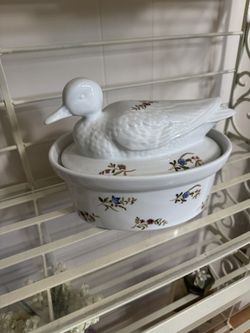 2012 BIA Cordon Bleu White Porcelain Floral Nesting Duck Casserole Dish$25Murrieta, CA