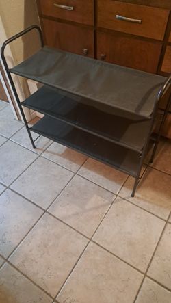 SoldSmall Shoe Rack, Shoe Holder, Preowned, Lightweight, 31" Wide By 28" Tall$15Fresno, CA