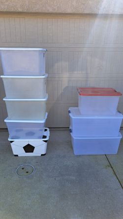 Storage Bins, Plastic, Lot Of 8, Preowned, Needs To Be Cleaned $30Fresno, CA