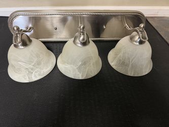 Brushed Nickel 3 Light Vanity Fixture With Elegant Swirled Alabaster Glass Shades$50Helena, AL