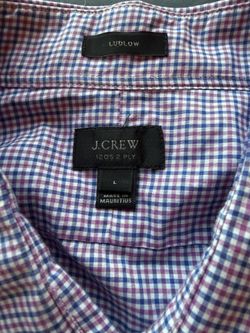 J Crew Large men's short sleeve multi color dark red with blue stripes and collar with 2 buttons,$10 cash. Must meet in person to deliver. $8Lake In The Hills, IL