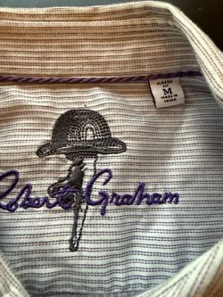 Robert Graham Medium men's classic fit long sleeve button down purple blue for dress or casual, $10 cash. Must meet in person for delivery. $8Lake In The Hills, IL