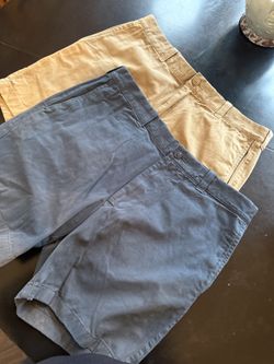 Two pairs Men's waist 35 J Crew shorts, one blue gray, the other beige , $12 total cash. Must meet in person for delivery. $12Lake In The Hills, IL