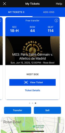 PSG vs Atletico - Soccer Match 3 June 15, 2025 Section 18-H Row 44. Three Tickets. Rose Bowl Pasadena, CA$200Upland, CA