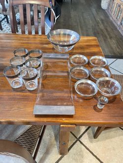 Mid Century Silver Rim Glassware Set – 15pc MCM Barware Tumblers Bowls Tray$45Bonita, CA