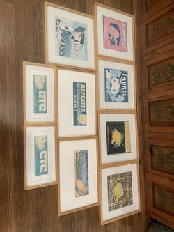 Vintage Kitchen & Cigar Label Framed Art – Set of 6$120Bonita, CA
