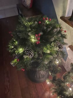 2 Urn Black Plastic Planters W Urn Filler With Lights & Matching Wreath $85Ronkonkoma, NY