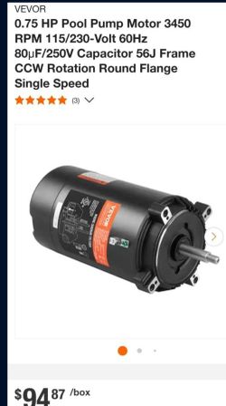 0.75 HP Pool Pump Motor 3450 RPM 115/230-Volt 60Hz 80μF/250V Capacitor 56J Frame CCW Rotation Round Flange Single Speed$65Tolleson, AZ