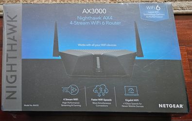 New in box never used NETGEAR RAX35 Nighthawk AX3000 4 Stream Dual-Band Wi-Fi 6 Router$69Bellevue, WA