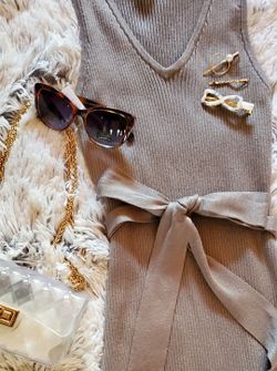Taupe Sleeveless Sweater Dress With Tie$20Wildomar, CA