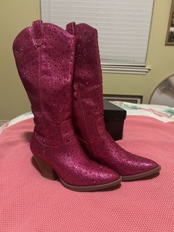Fuchsia Pink Rhinestone Knee High Pull-up Boots Pointed Toe$35Arcadia, CA