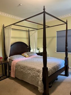 Canopy Queen Bed Set w/bedside Table And Rotating Diplay Cabinet/bookshelf$1,000Arcadia, CA