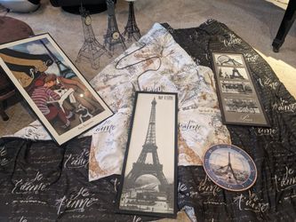 Paris/Eiffel Tower--Queen Bedspread, Pictures, Lamp, Clock, Decorations$60Placerville, CA