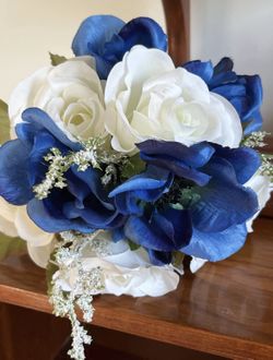 ROYAL BLUE and WHITE roses wedding prom bridal bouquet$35Rockaway, NJ