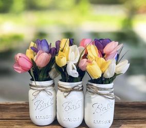Chalk painted distressed SPRING mason jars - TULIPS mixed$29Rockaway, NJ