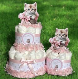 2 PINK and WHITE kitten themed diaper cakes$35Rockaway, NJ