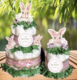2 SPRING BUNNY RABBIT baby shower diaper cake centerpieces$39Rockaway, NJ