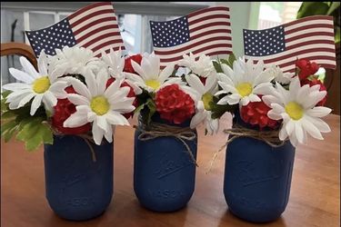 Chalk painted distressed mason jars - Patriotic RED WHITE BLUE$33Rockaway, NJ