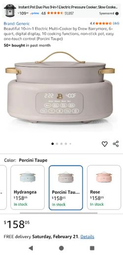Drew Barrymore Beautiful 10 in 1, 6 Qt Electric Multi-Cooker, Porcini Taupe $50Sterling Heights, MI