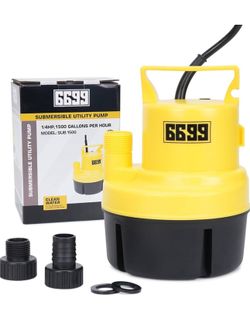Submersible Sump Pump 1/4 HP 1500GPH Utility Pump Thermoplastic Electric Portable Transfer Water Pump with 10-Foot Cord for Pool Tub Garden Pond Drain$35Mesa, AZ