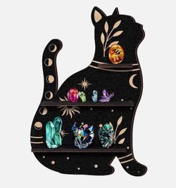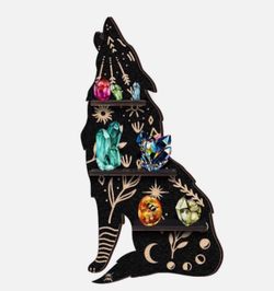 Crystal Shelf Display Rustic Wooden Cat Moon Shelves Wolf Crystal Holder Shelves Wooden Floating Shelf for Rock Gemstones Meditation Spiritual Gift fo$12El Monte, CA