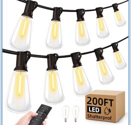 Outdoor String Led Patio Lights - 200Ft 60M Outside Waterproof Light with Remote Dimmable ST38 Shatterproof Bulb Hanging Outdoor Electric Lighting for$60El Monte, CA