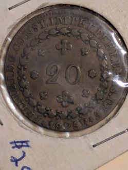 Brazil 1825 R(Rio) 20 Reis Misstrike Error Coin$50Tempe, AZ