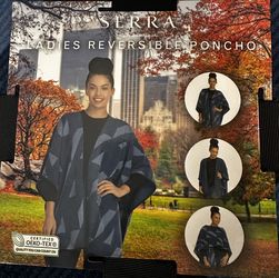 Serra Ladies Reversible Poncho One Size Blue Pattern New With Tags$13Melbourne, FL