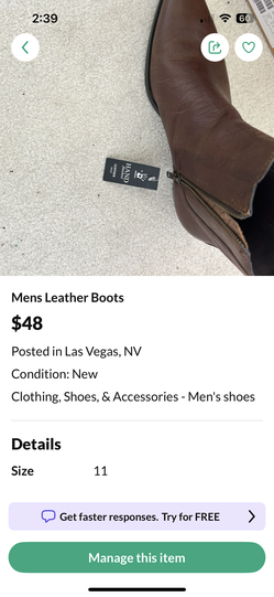 Men’s leather boots$30Las Vegas, NV