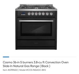 Cosmo 36” Gas Range In Black $1,450Rancho Cucamonga, CA