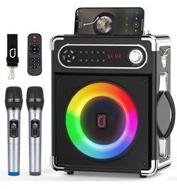 Karaoke Machine with Two Wireless Microphones, Portable Bluetooth Speaker with Bass/Treble Adjustment, PA System with Remote Control, LED Lights,Suppo$65San Gabriel, CA