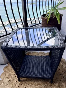 Outdoor Resin Wicker Side Table w/ Glass Top – Modern Patio$45Miami, FL