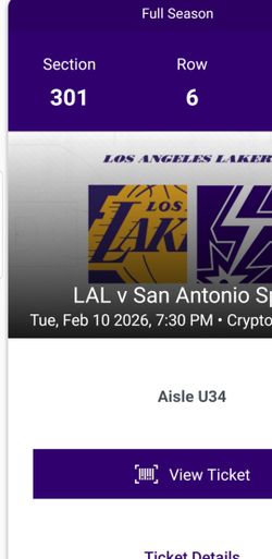 Lakers Vs San Antonio Spurs $152Los Angeles, CA