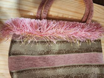 Pink & Golden Fluffy Top Tote Bag with Snap & Fringe around the top Purse$20Waldo, FL