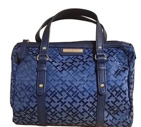 Tommy Hilfiger Navy Blue Monogram Fabric Faux Leather Trim Bag$50Waldo, AL