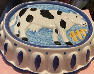 Cow At Fence Ceramic Wall Hanging$10Lane, SC