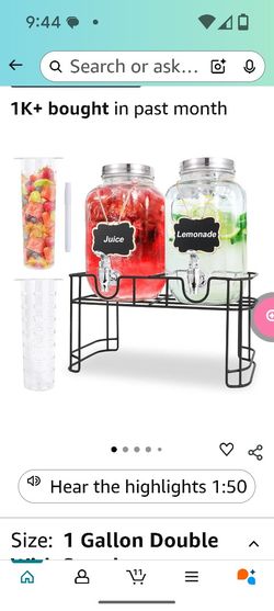 1 Gallon Glass Drink Dispensers For Parties-Set of 2,Drink Dispenser with Fruit Infuser & Stand.$20San Antonio, TX