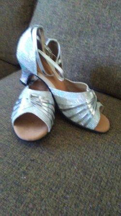 Glittery iridescent silver pumps never worn$20Chicago, IL