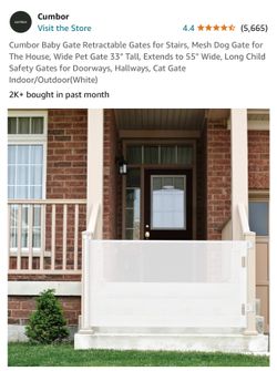 CUMBOR Baby/Puppy dog gate Retractable Gates - White Mesh Dog Gate For House - BRAND NEW in Open Box$30Rosemead, CA
