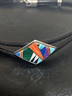 Vintage Native American Necklace Zuni Multi Stone Inlay 925 Sterling Silver Trade B.G.M B.G MUDD$0Eureka, CA
