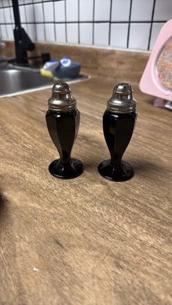 Vintage Black Amethyst Glass Footed Salt & Pepper Shaker Set with Metal Lids- Circa 1930s/1940s- Unmarked- Art Deco- Collector Gift$30Montebello, CA