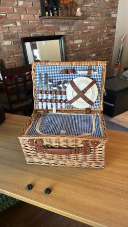 Wicker Picnic Basket for 2 People w/ Insulated Cooler, Wine Glasses, Handle & Utensils$35Pico Rivera, CA