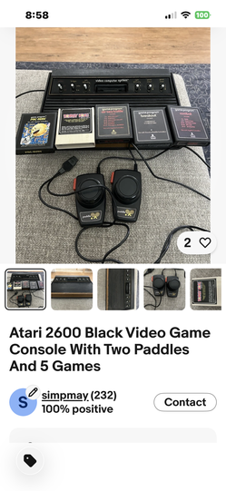 Atari 2600 Black Video Game Console With Two Paddles And 5 Games$100San Diego, CA