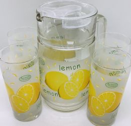 Alpine Cuisine “Lemon” Frosted Glass Pitcher With Matching Glasses Vintage 4$45Fresno, CA