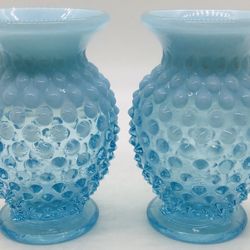 Pair Of Vintage Small Aqua Blue Opalescent Hobnail Vases$45Fresno, CA