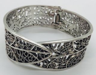 Filigree Open Work Silver Plate hinged Cuff Bracelet Mid Century Vintage$20Fresno, CA