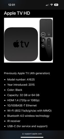 Apple TV HD With Siri Remote $80Los Angeles, CA