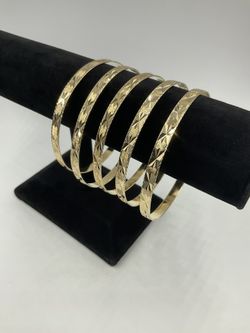 14KT YELLOW GOLD 8.25” LADIES FASHION 5 BANGLE SET 4.8MM 37.0GR$5,000Rialto, CA