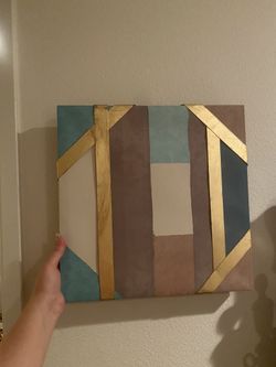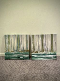 2 Abstract Canvas Paintings, Blue Green And Gold, Wave Painting, 16”x16”$0Riverside, CA