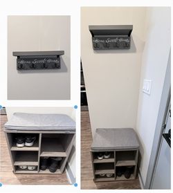 2 - Pieces - Wall-mounted coat rack with shelf and a cushioned storage bench with shoe cubbies. Stylish, practical, and in excellent condition can be $49Herndon, VA